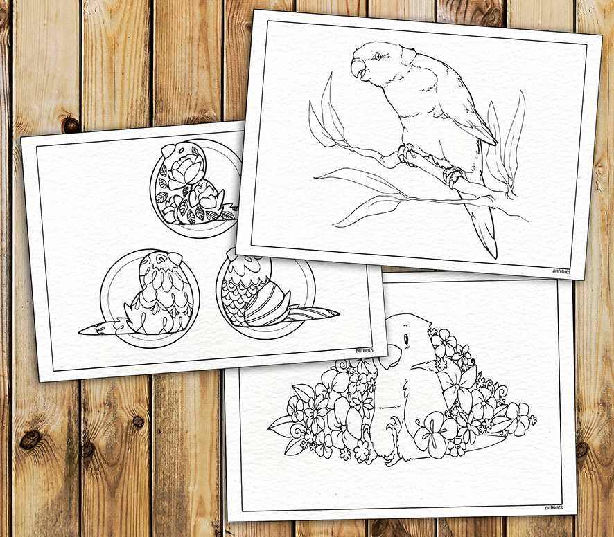 I made this colouring book to celebrate my birdboy, Nico. There are 16 pages of drawings, plus two bonus blank-birdy pages for you to do your own designs on.